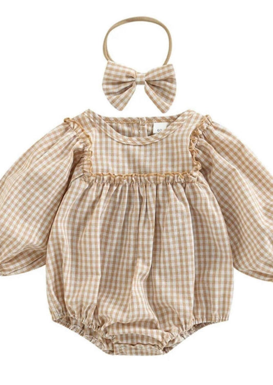 Gingham Romper & Bow Cream